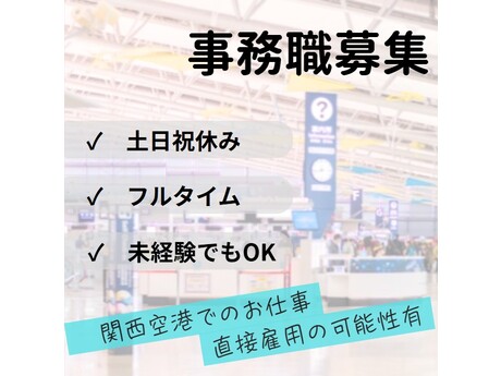 〇 事務のお仕事未経験でもご応募お待ちしております♪〇 空港では希少な事務職の募集です★〇 土日祝休み〇 直接雇用の可能性あり★
